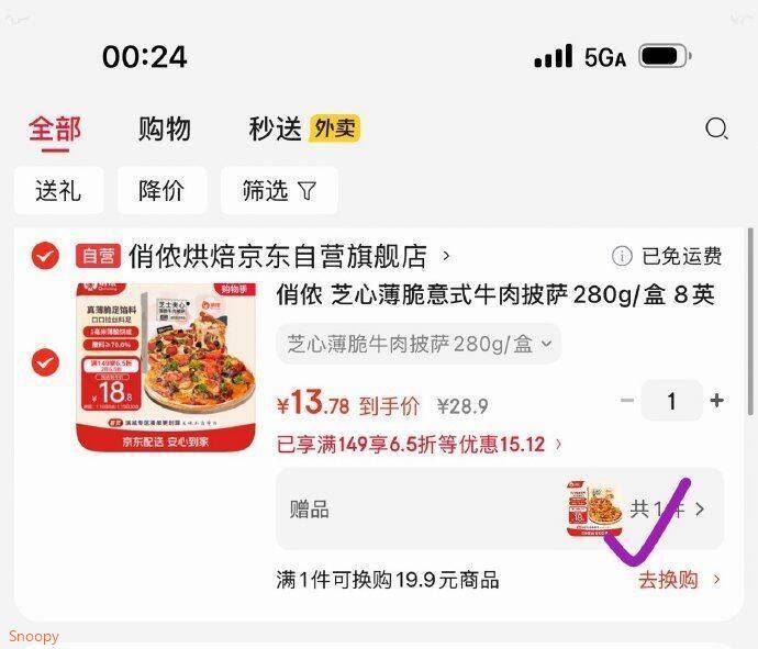 俏侬 芝心薄脆意式牛肉披萨280g/盒 8英寸