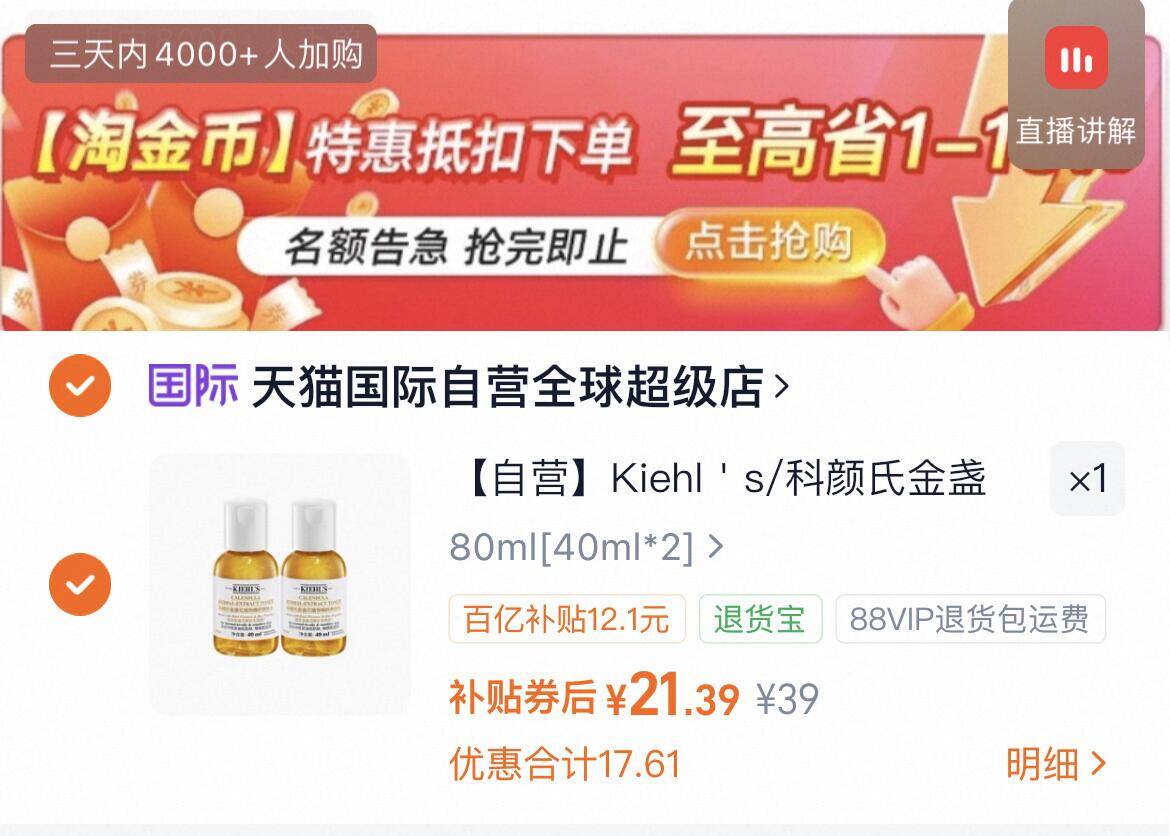 科颜氏金盏花爽肤水2瓶21