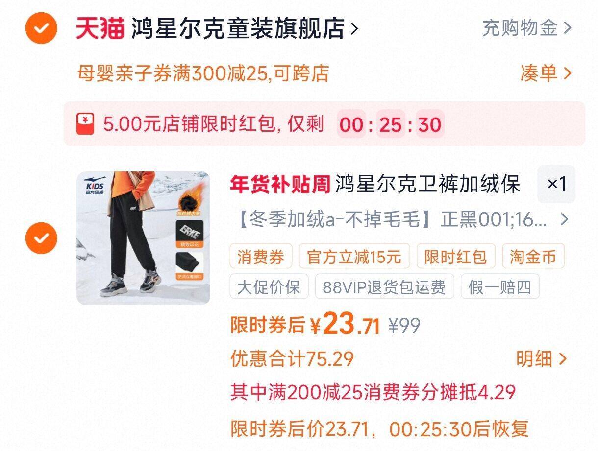 用母婴300-25券,23亓1、加1件