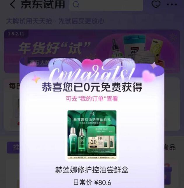 京东首页搜京东试用 部分弹赫莲娜