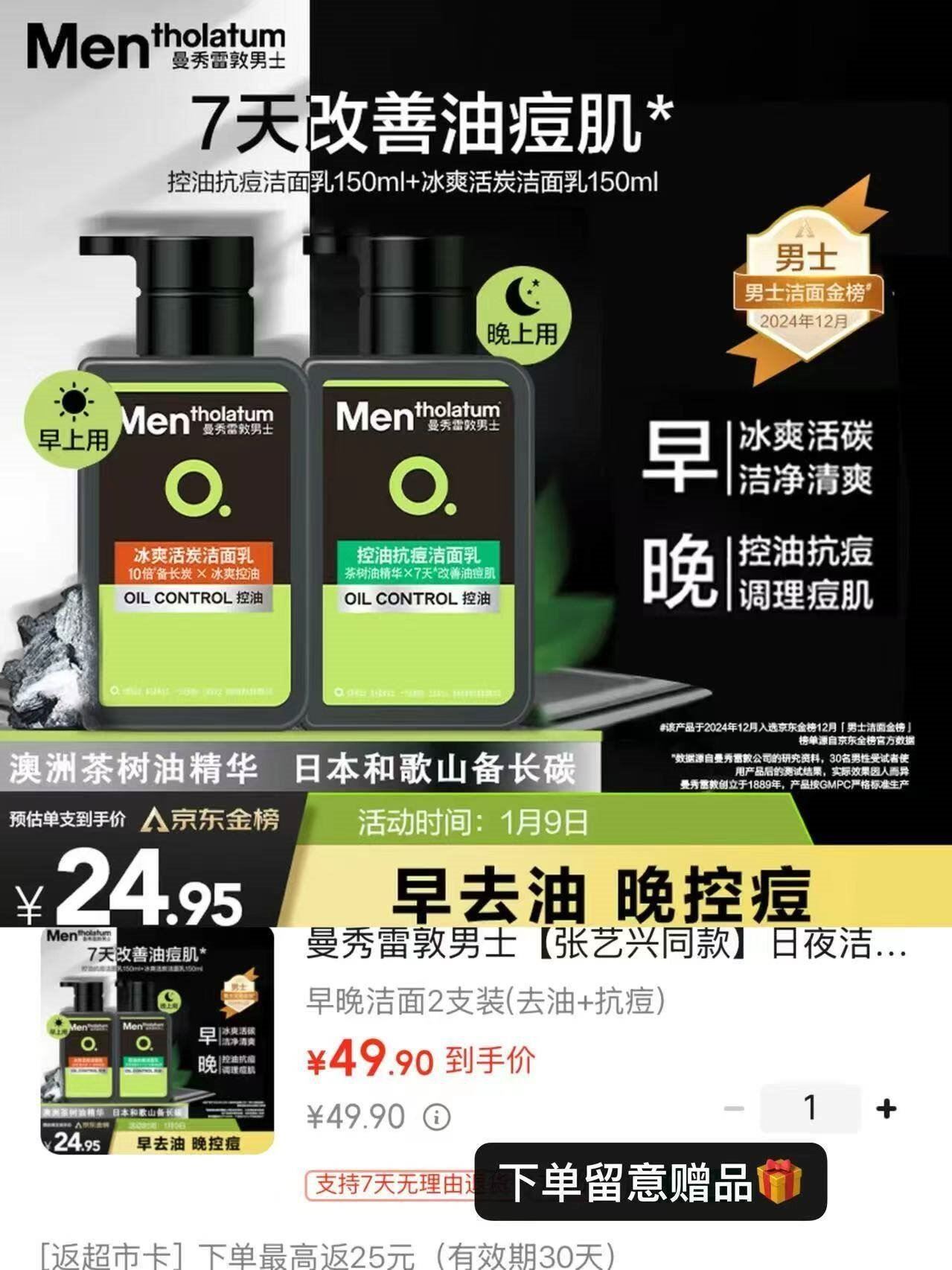 【自营】男士洗面奶150ml*2瓶
