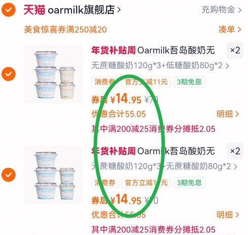 2、领券加购物车4件