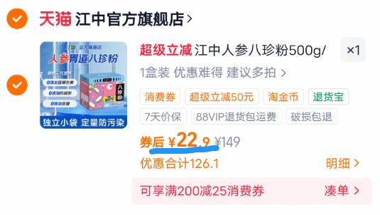 【江中】人参八珍粉500g