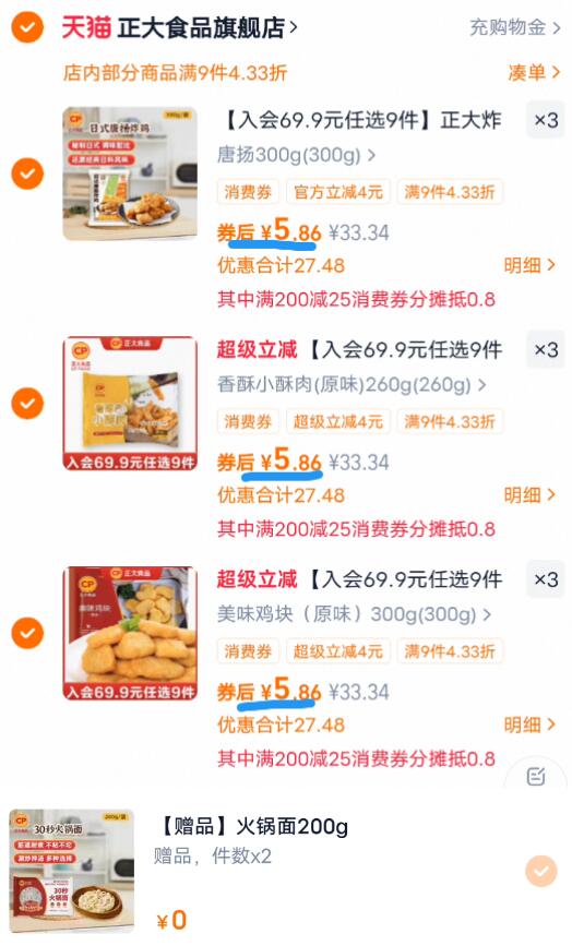 2、领券加购物车9件