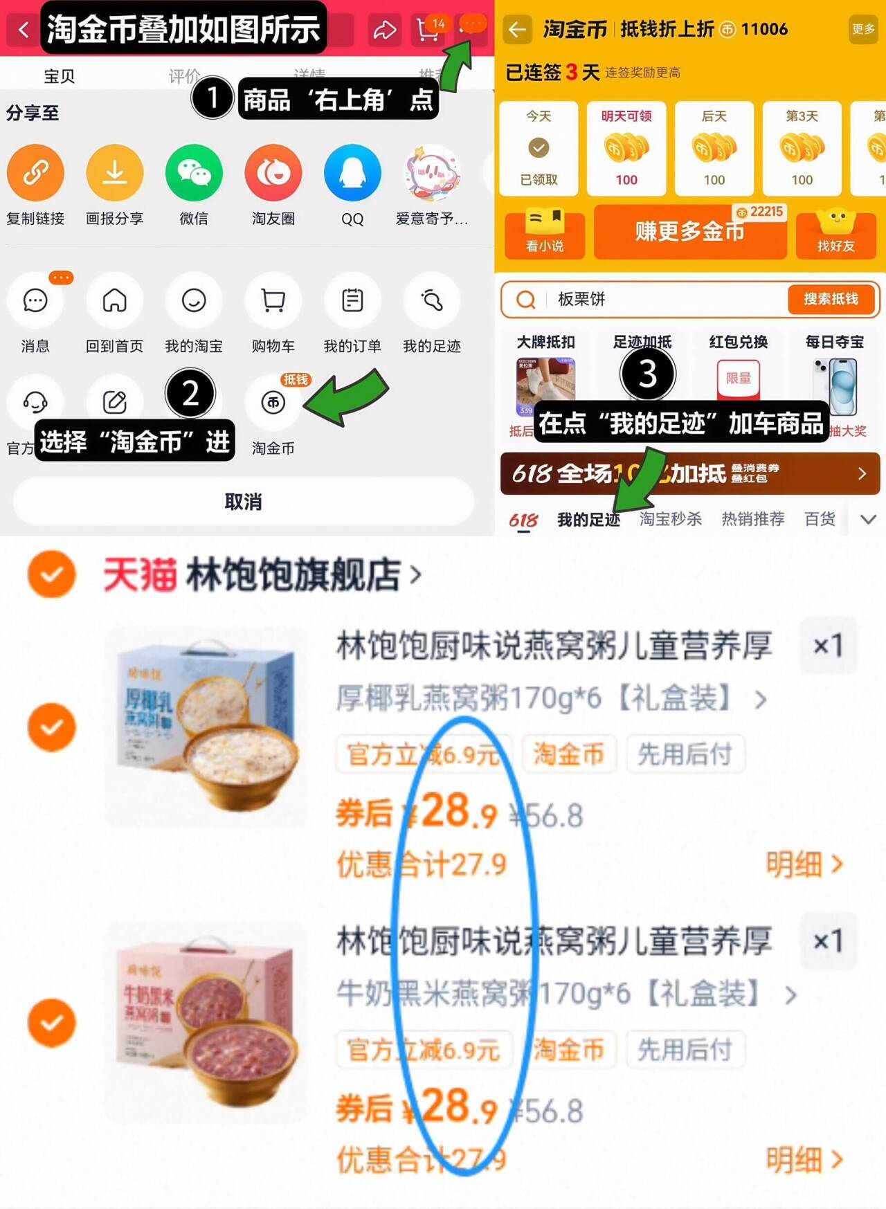 1、如图点右上角3个点,选淘金币