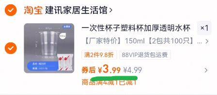 一次性加厚塑料杯100个