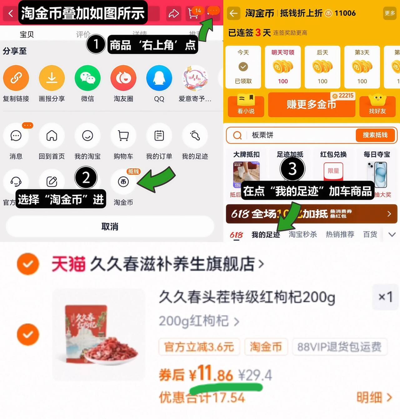 1、如图点右上角3个点,选淘金币