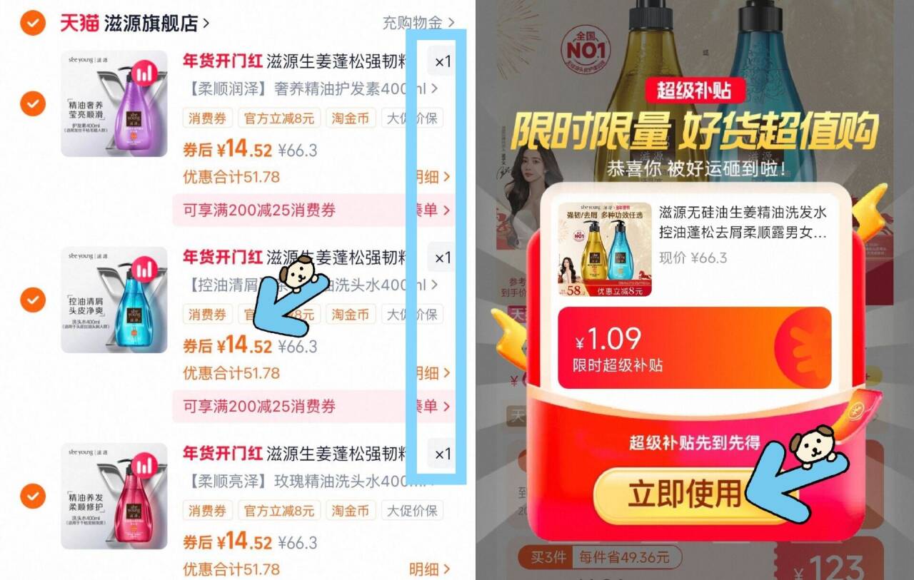 需叠加1.09淘礼金 淘金币