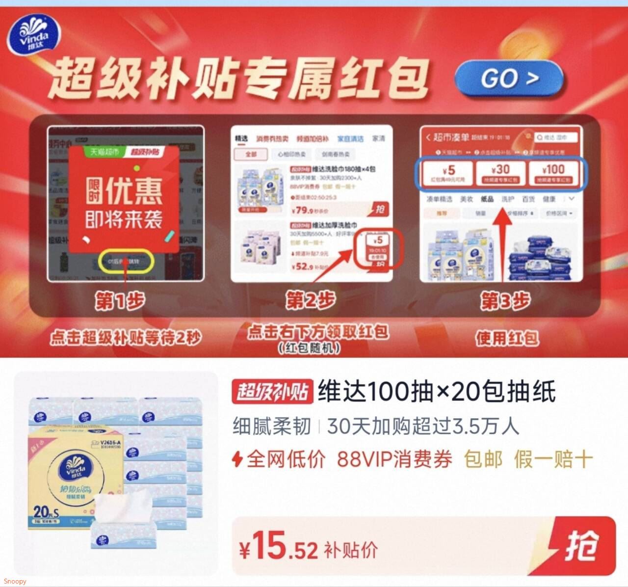 去陶宝→我的→会员中心→領虹包