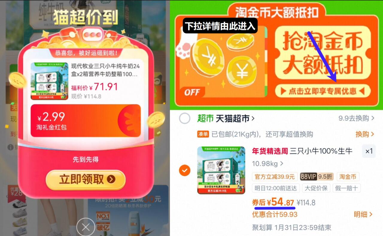 【三只小牛】纯牛奶200ml*24盒*2箱