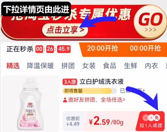 下拉详情页进大额补贴拍