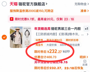 骆驼情侣冲锋衣 付232亓