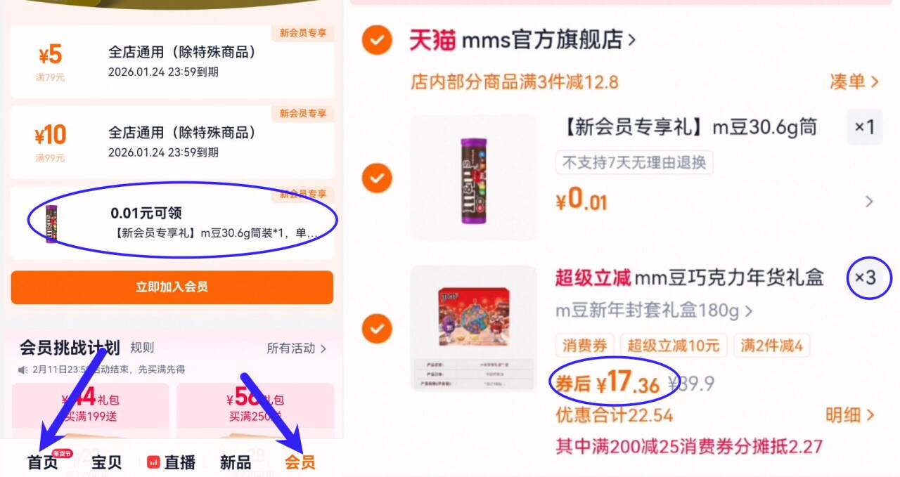 2、领3次券加购物车3件