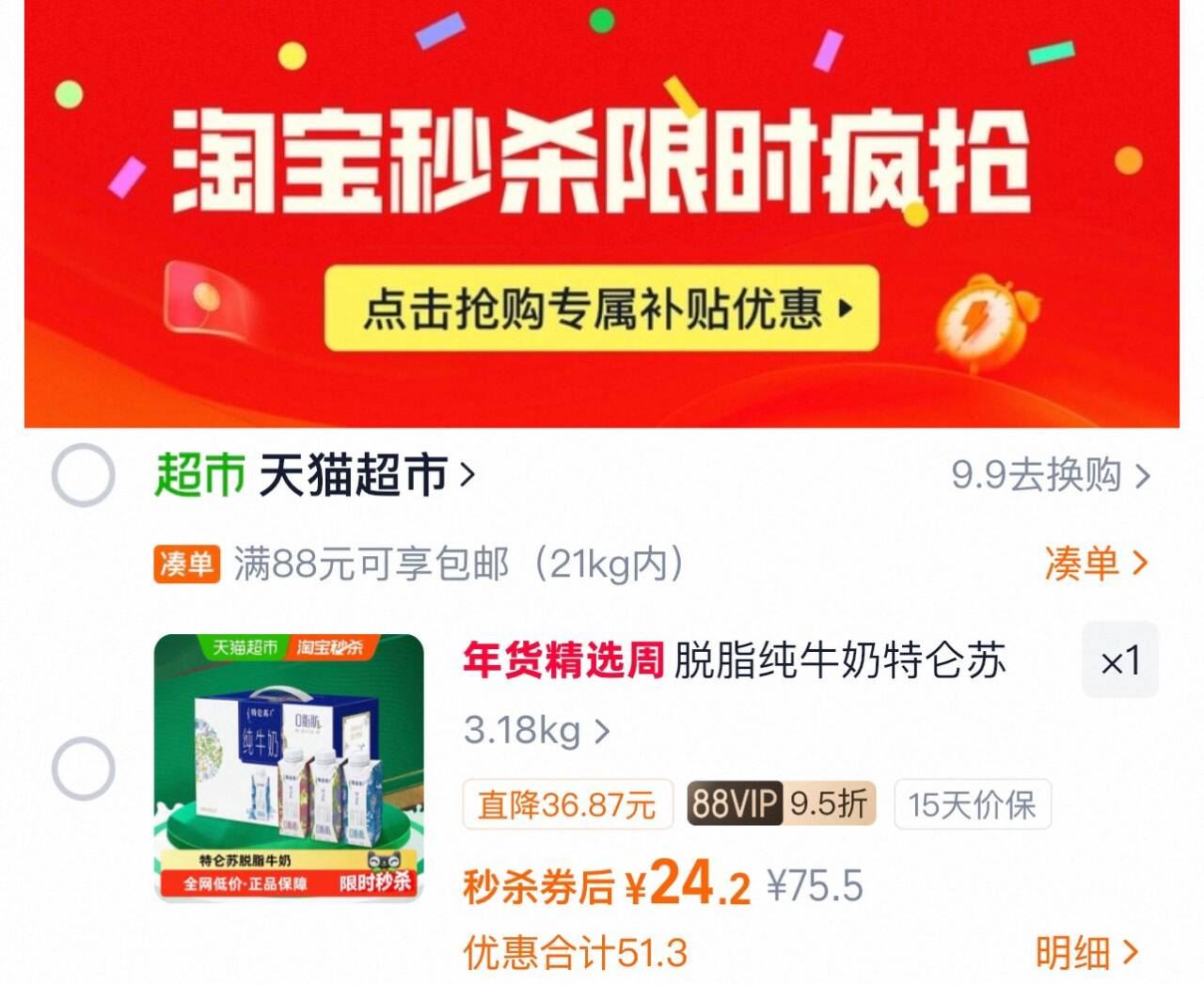 特仑苏嗨Milk脱脂纯牛奶250ml*10盒