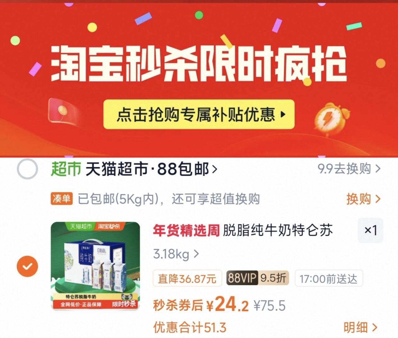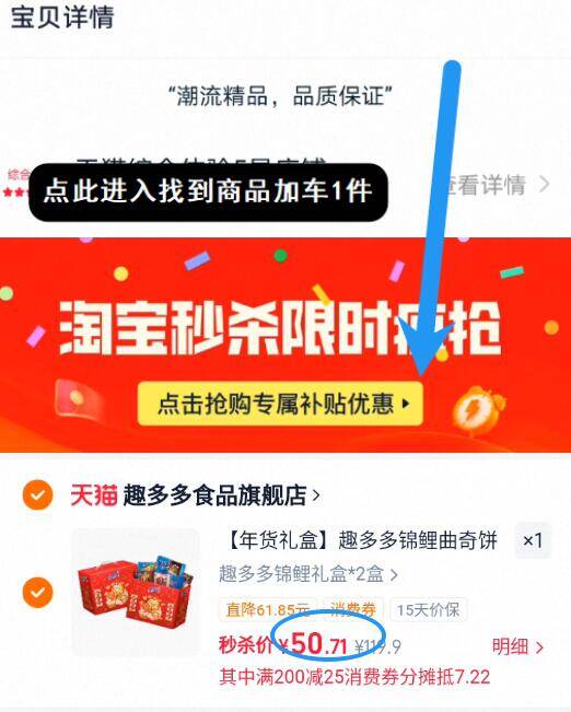 2、下拉详情进秒杀会场加车1件