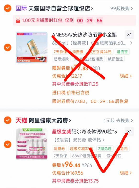 2、領券加购物车2件