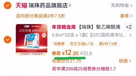 【瑞珠】聚乙烯醇滴眼液水40支