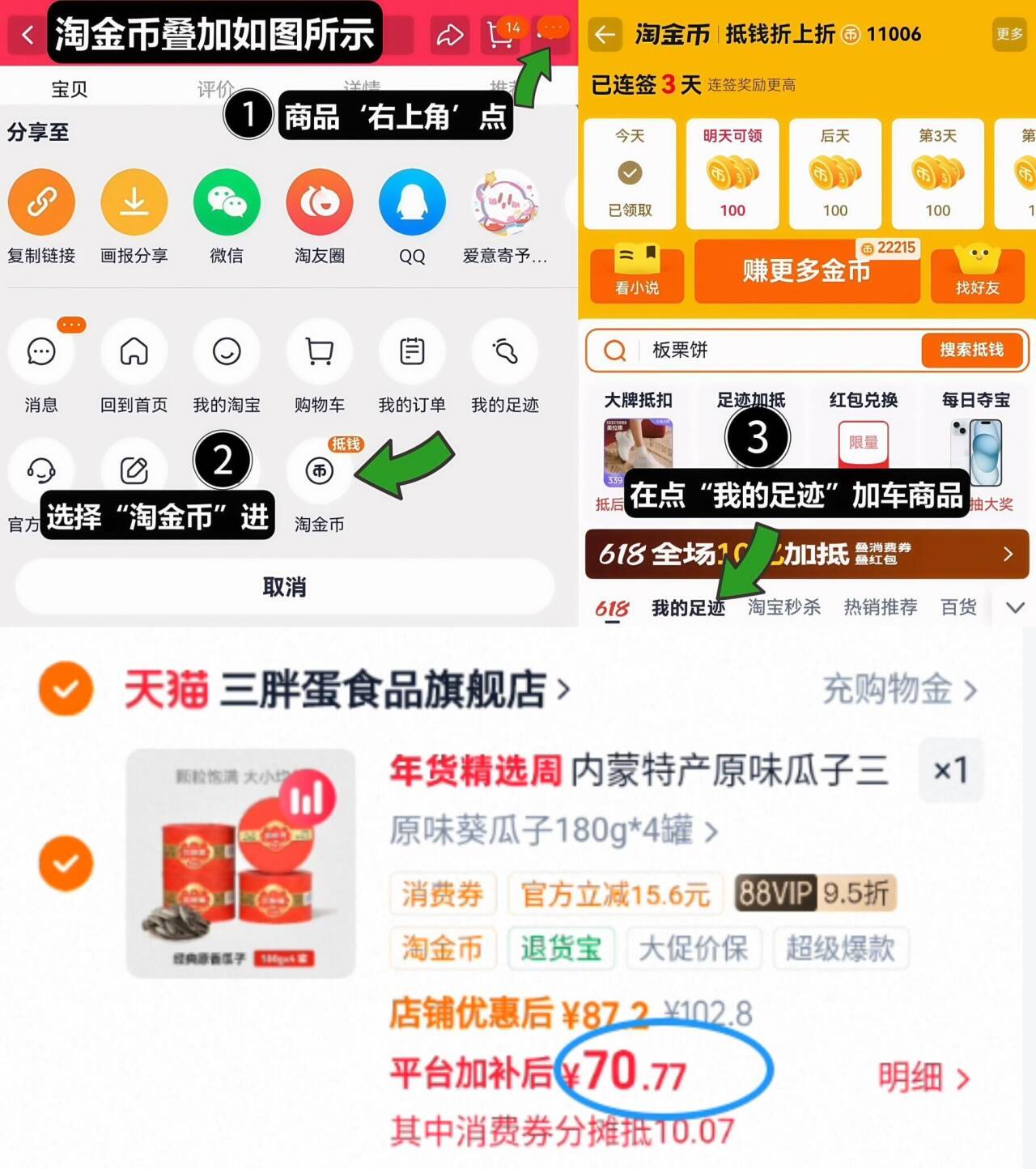 2、如图点右上角3个点,选淘金币