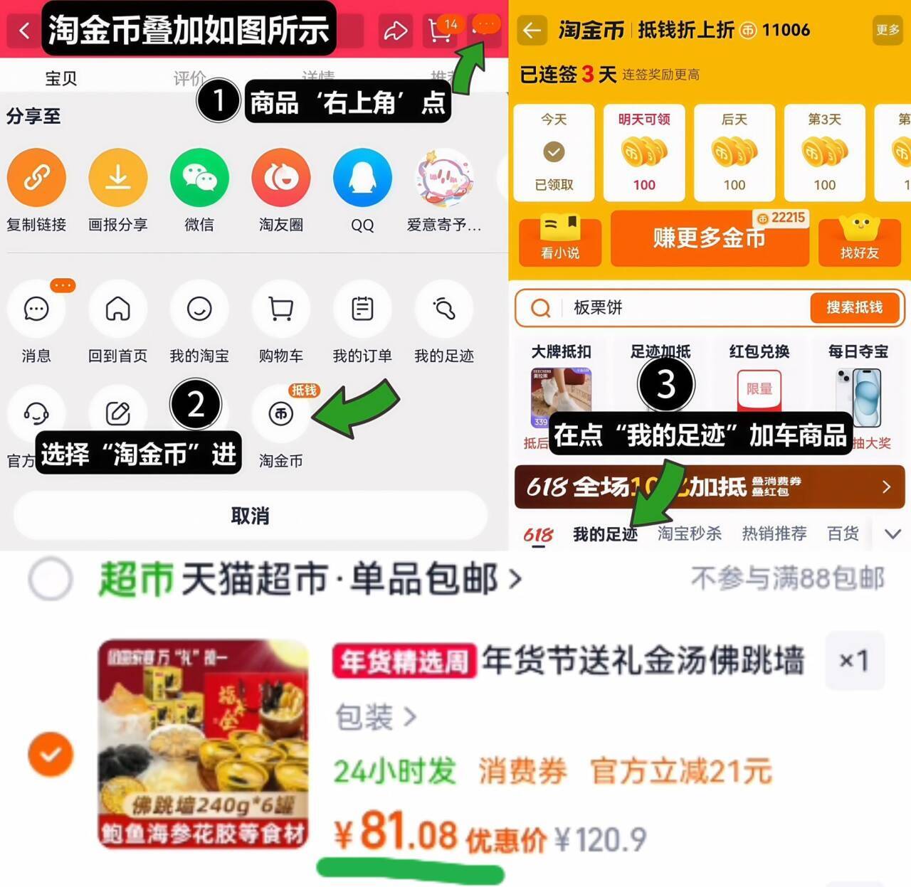 2、如图点右上角3个点,选淘金币