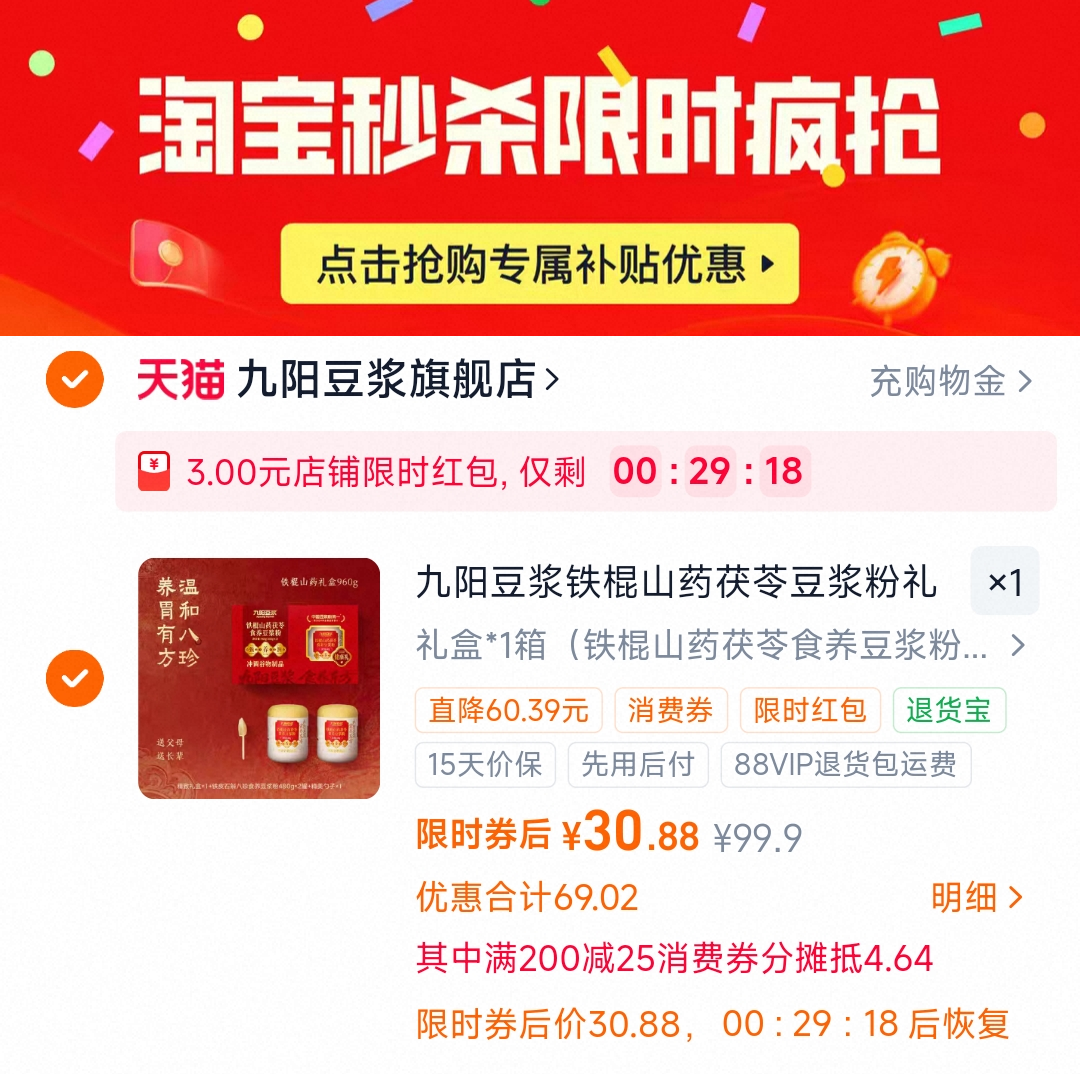 限时30.8亓 折15.4亓/罐
