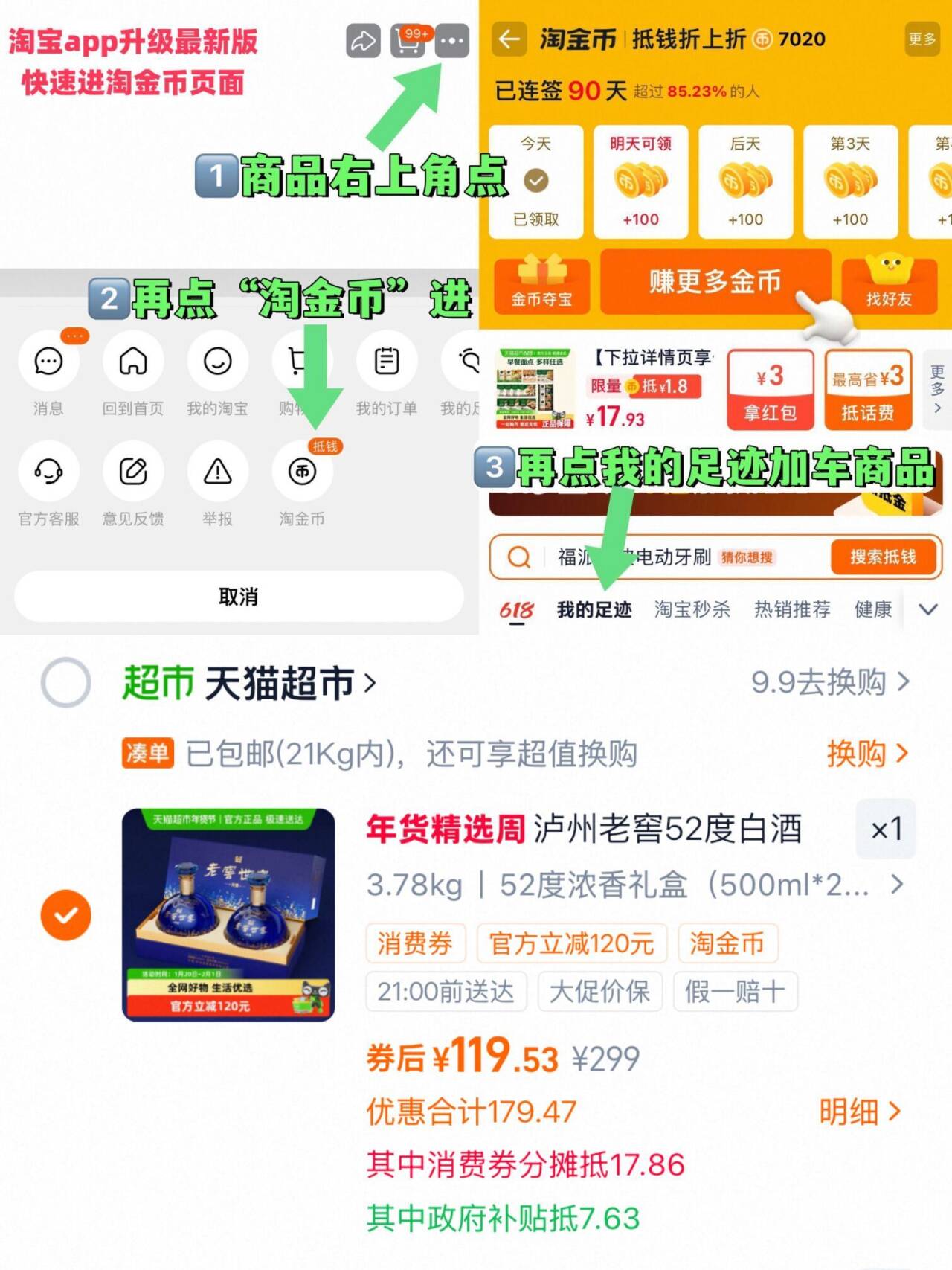 1、右上角“淘金币”加1件