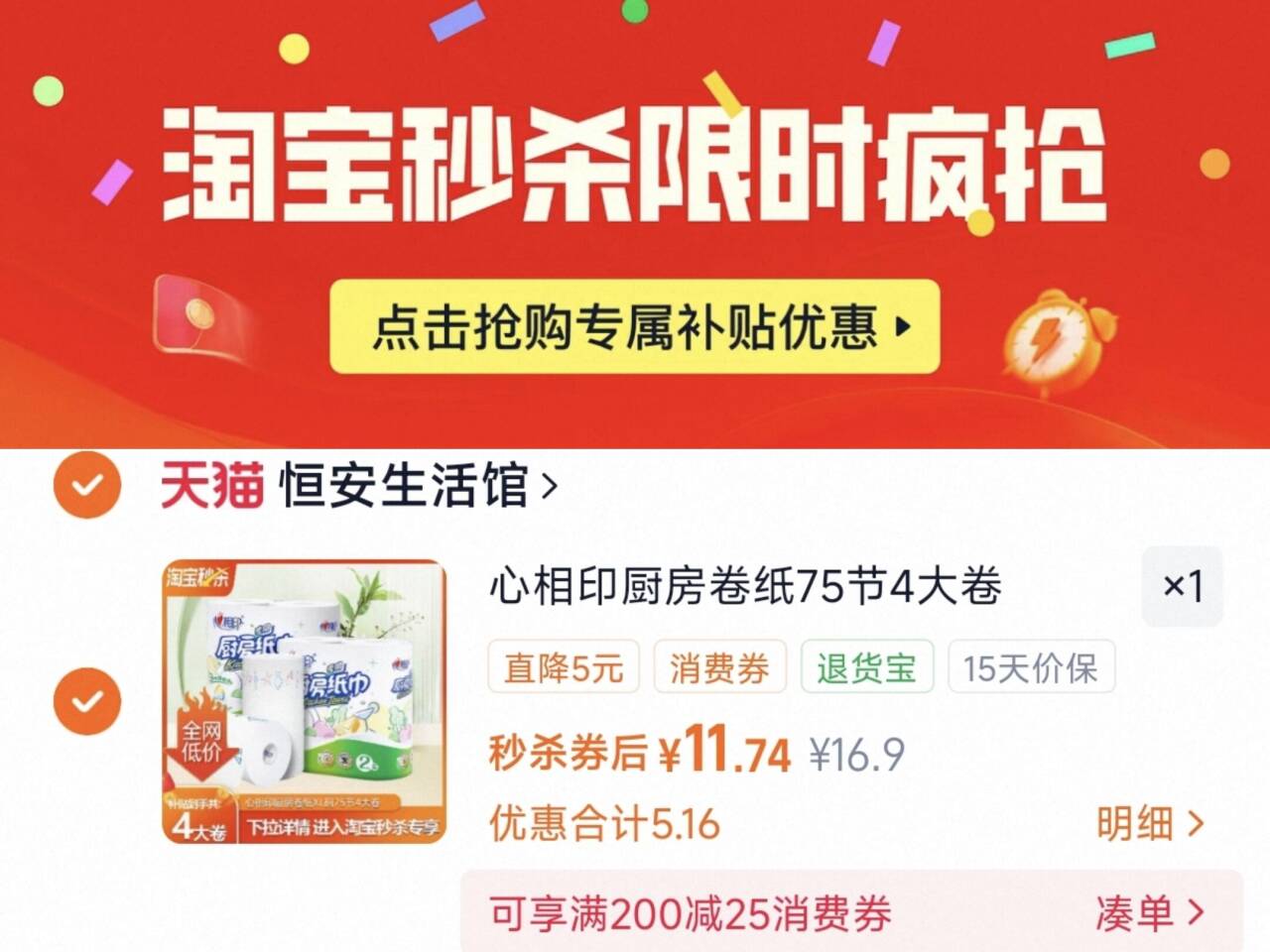 3、再凑1件,用200-25消费劵