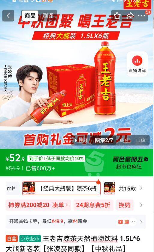 【王老吉】植物饮料大瓶1.5L*6瓶