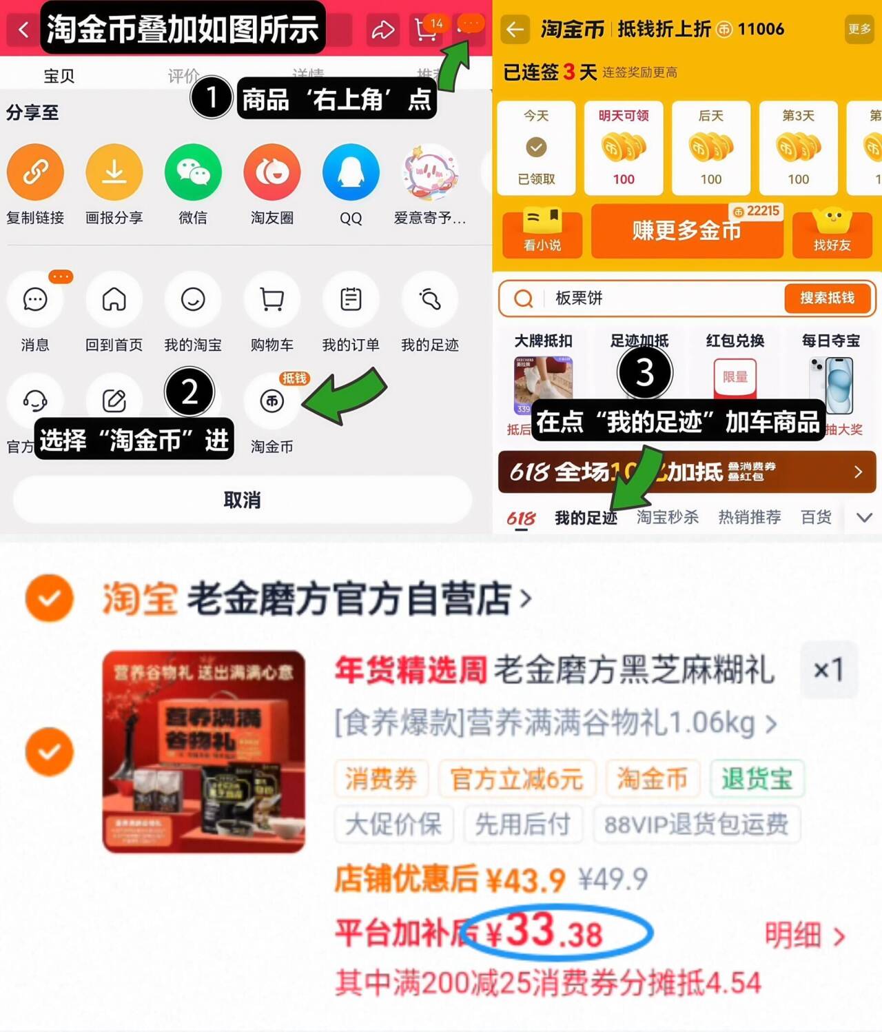 2、如图点右上角3个点,选淘金币