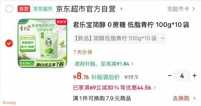 君乐宝简醇 0蔗糖 低脂青柠 100g*10袋