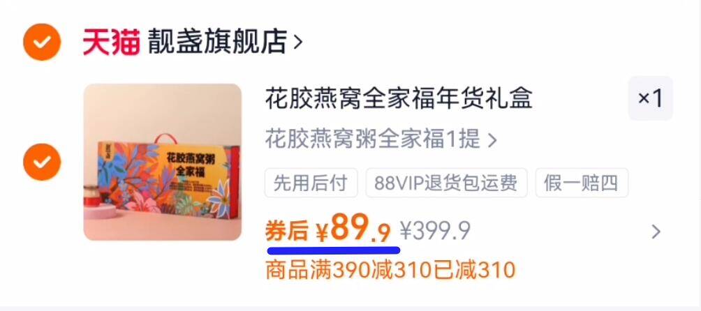 含:牛奶花胶150g*4 燕窝粥252g*6