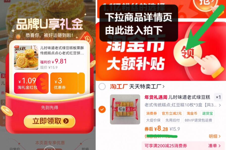 下拉详情页跳转淘金币会场拍下