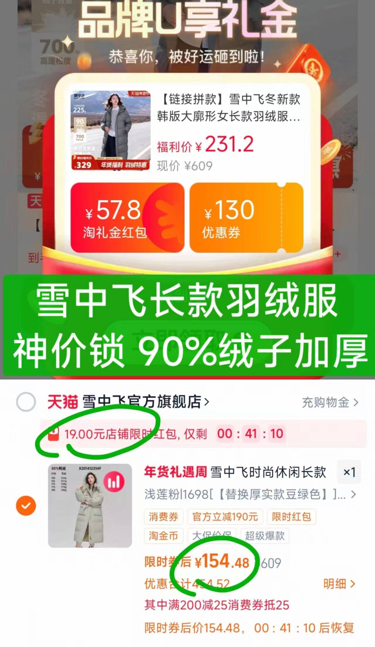 雪中飞大廓形女长款羽绒服加厚