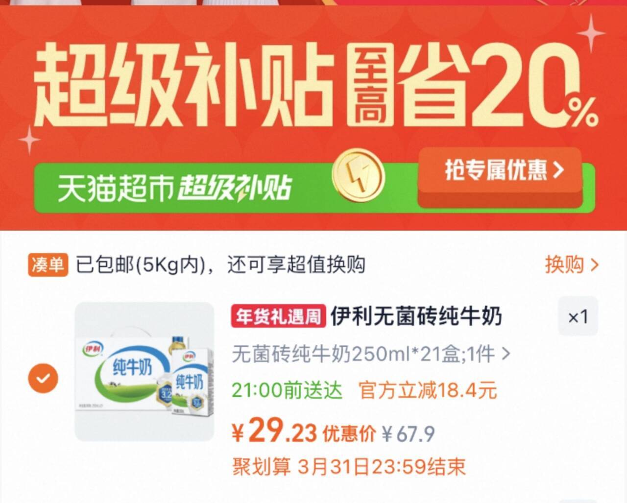 伊利纯牛奶250*21盒
