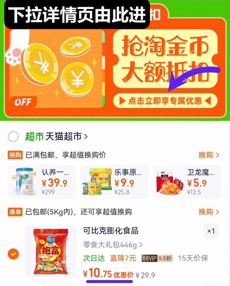 领券下拉详情跳转淘金币拍
