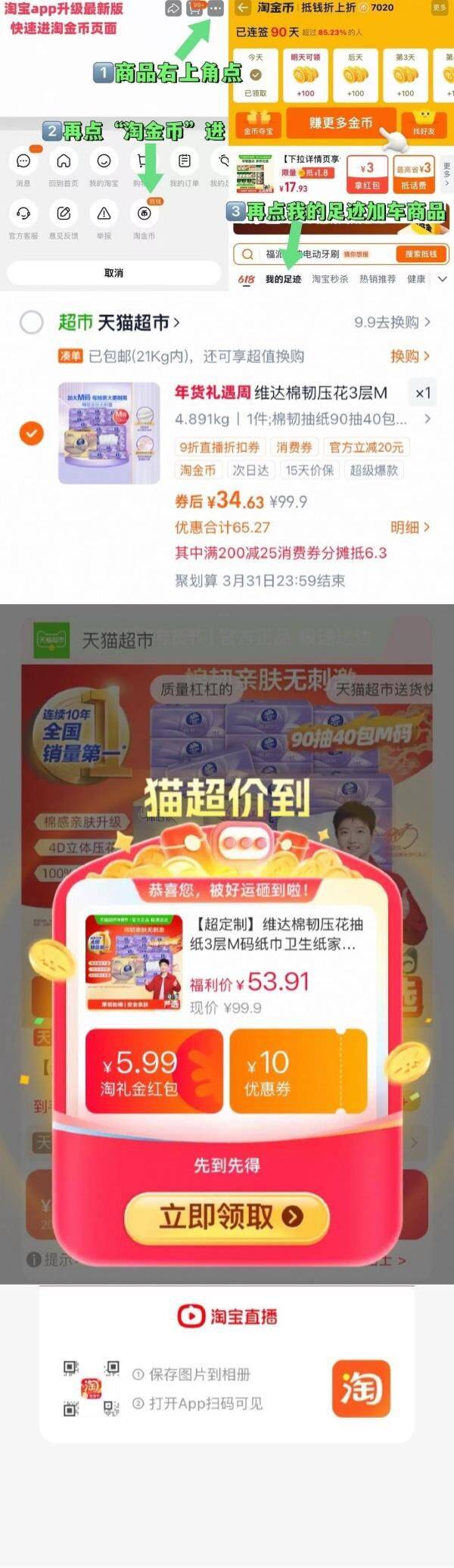 ①扫图三进入直播间领9折主播券,搜索商品加购