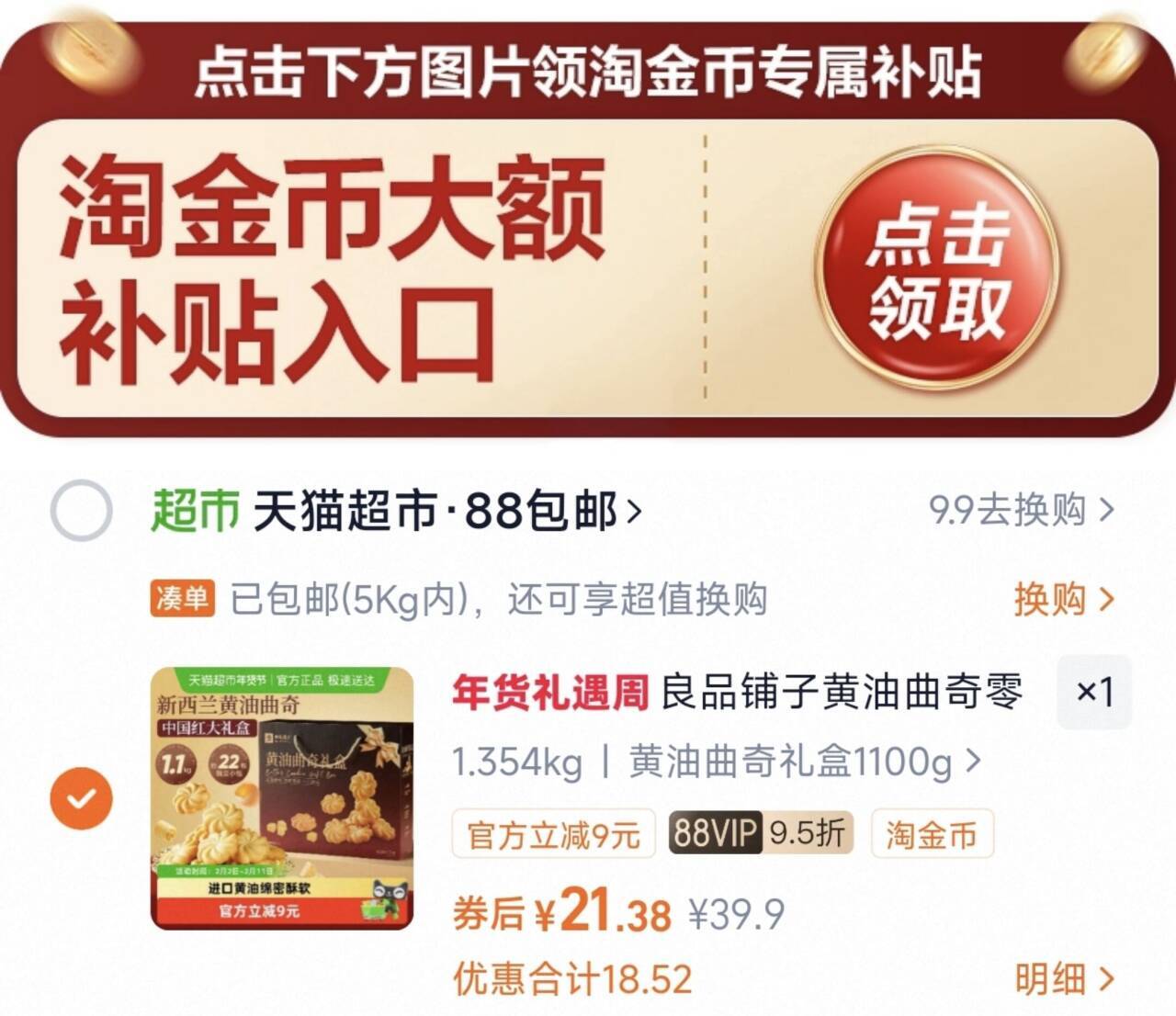 2、淘金币页面将商品加购1件