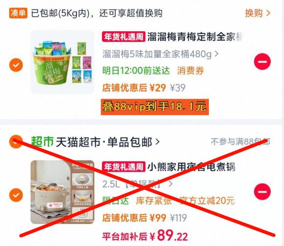 一起付款然后退掉凑单