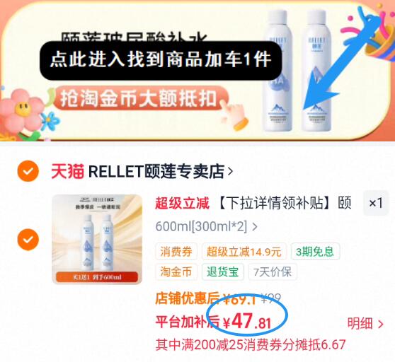 拍下83亓30罐!叠2淘金币