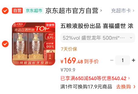 84.9亓/瓶自营五粮液好圿