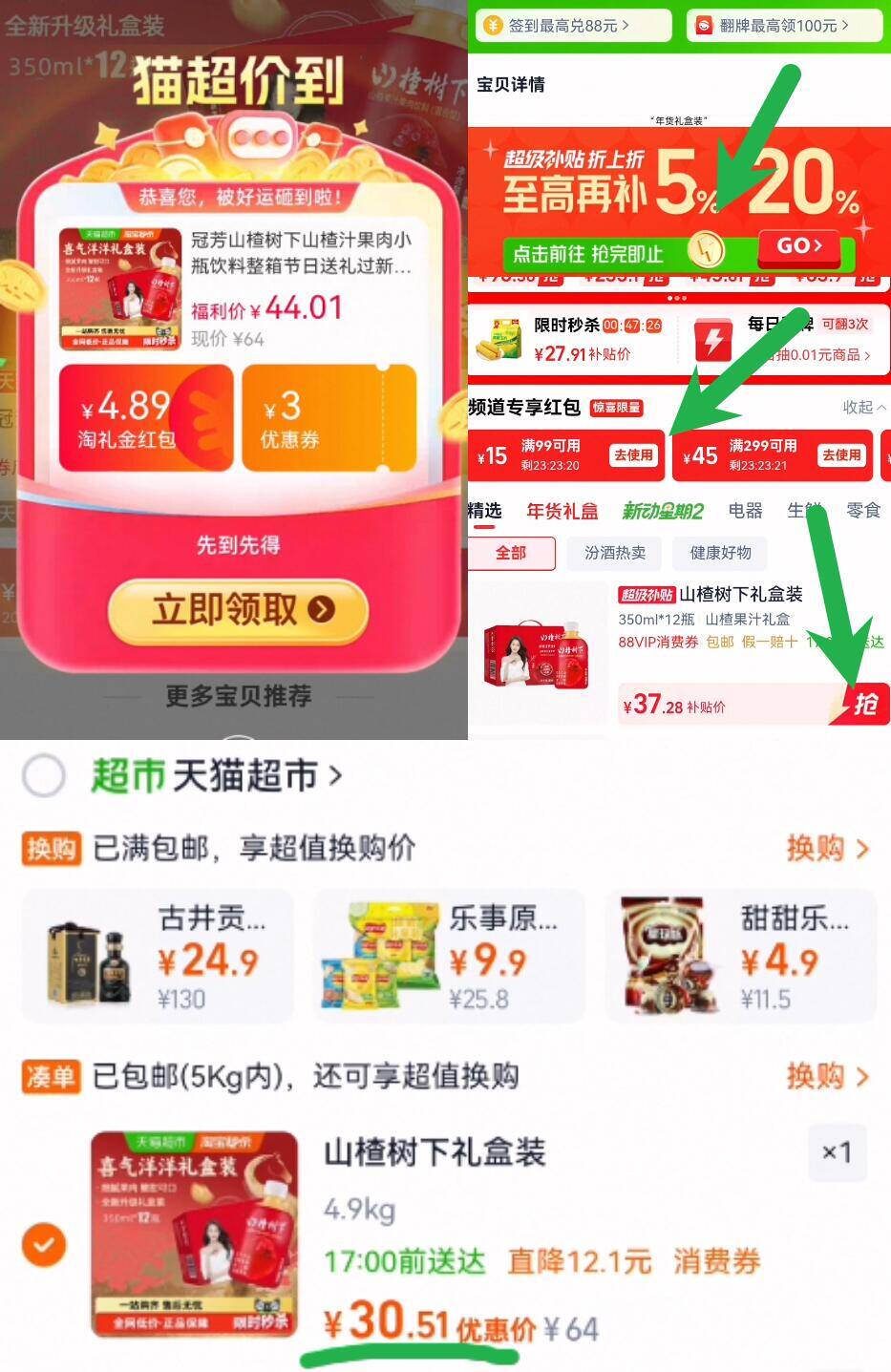 1、先下拉详情页去超级补贴
