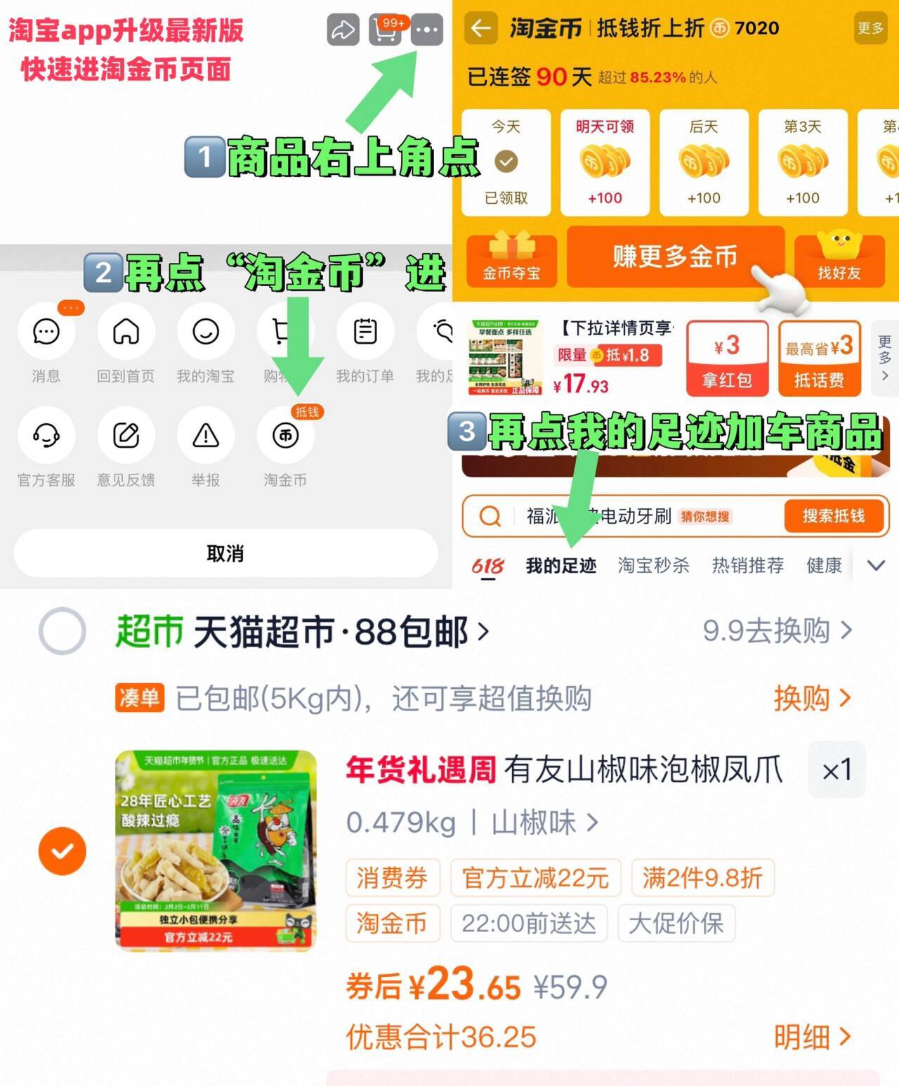 1、如图点右上角3个点选淘金币