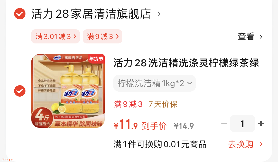 11.9亓,折5.9/瓶