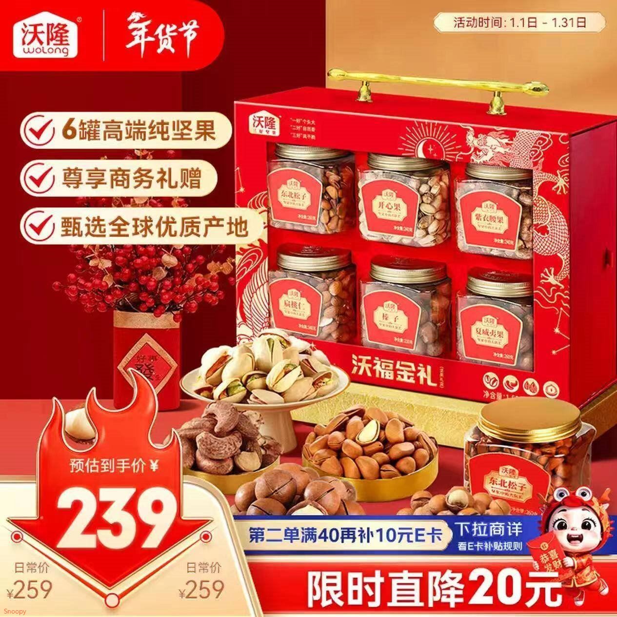 【自营】沃福金礼纯坚果1.48kg