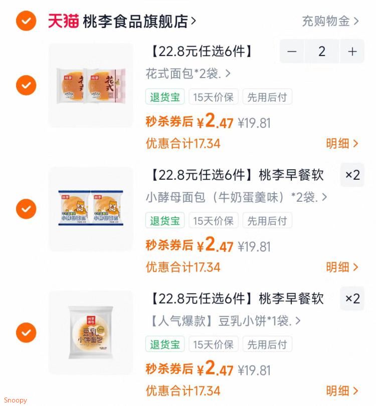 桃李早餐面包任选6件元14.8