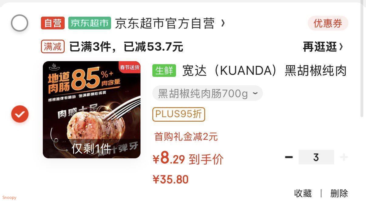 宽达黑胡椒纯肉肠700g