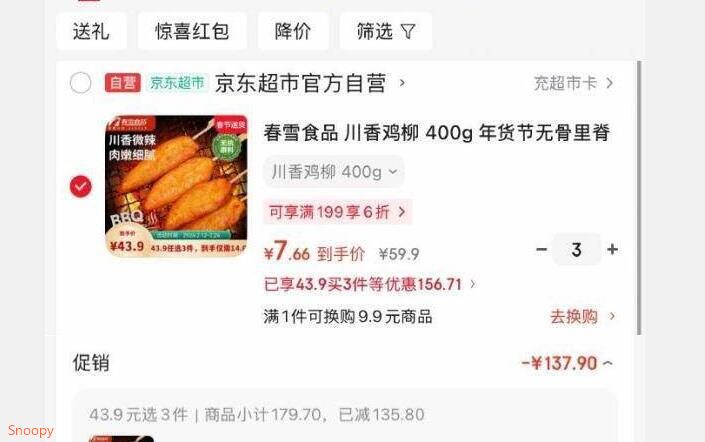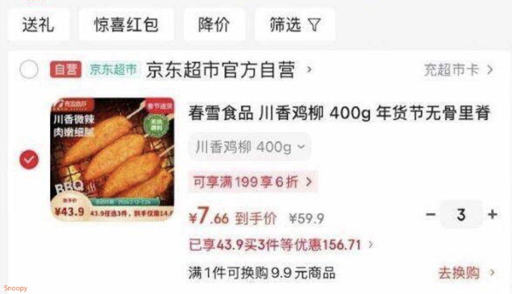 春雪食品 川香鸡柳 400g,3件 单件7.66