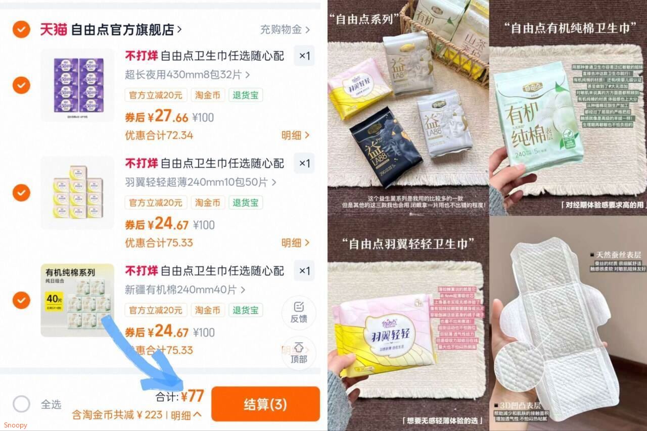 26/套!!自由点卫生巾合集