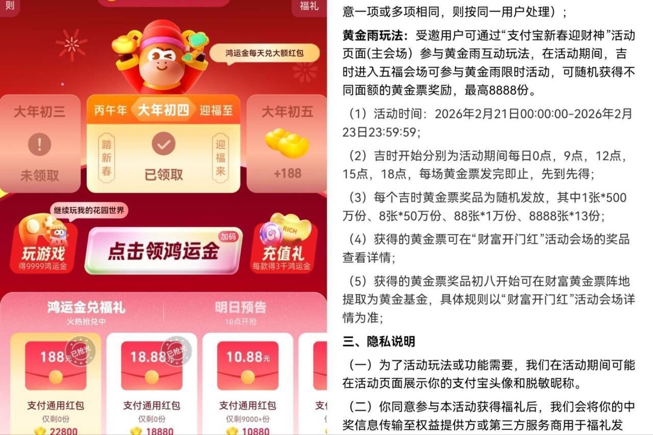 会有黄金雨互动 随机发放