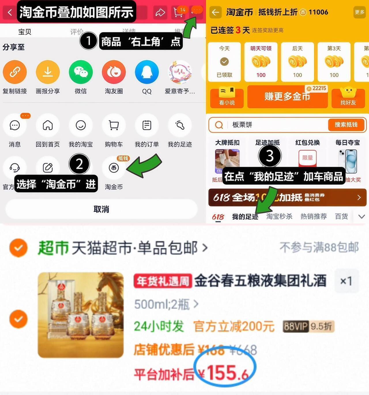 1、如图点右上角3个点选淘金币