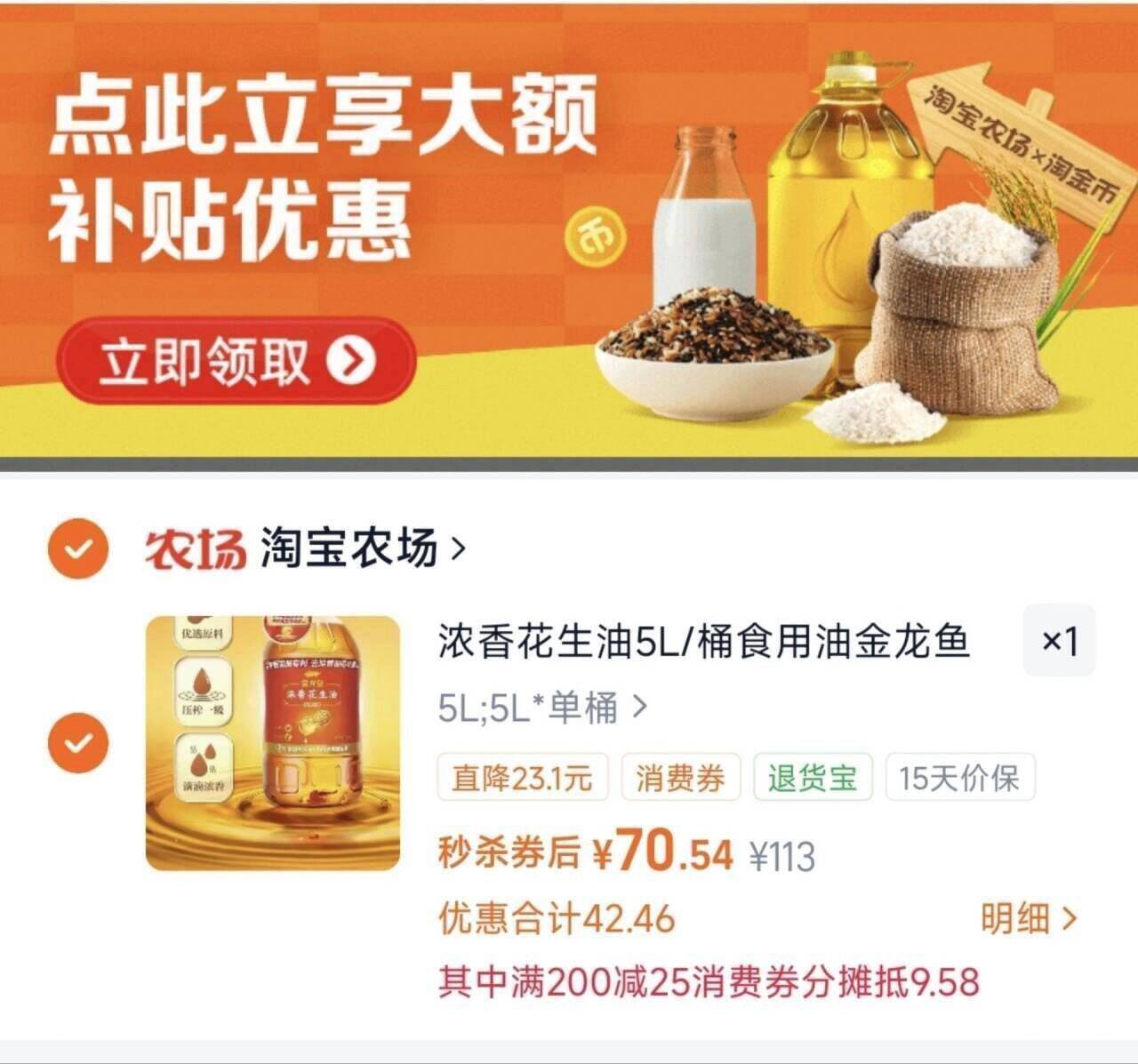 金龙鱼 浓香压榨一级花生油 5L